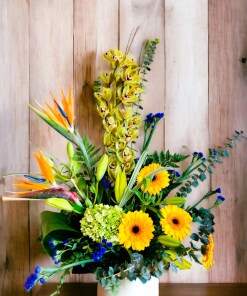 If not the above ones, our “Embrace Every Possibility” clear vase can be a great pick for you. It comprises fresh and fragrant flowers, ranging from strong cymbidium orchids, a bird of paradise, and a small hydrangea to an Asiatic lily, a statice, and a small gerbera daisy. This combination of flowers represents the spirit of love and inspires people to embrace possibilities in life. What’s more, besides its visually stunning combination of pretty flowers, the scent is exotic and alluring. So, make up your mind now because these anniversary flowers in Calgary can be a perfect treat for your special occasion.