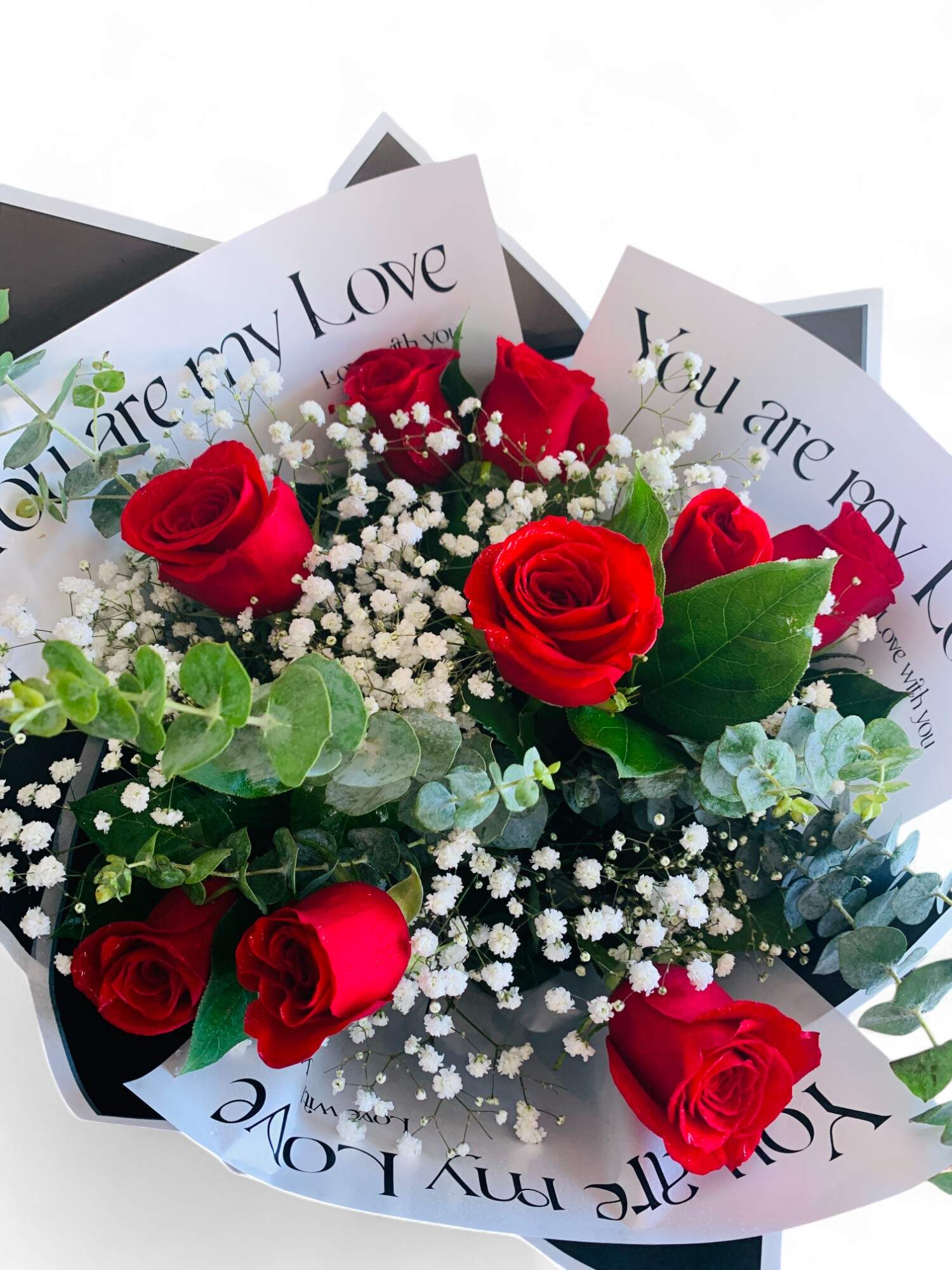 - Elegance in Every Detail: The bouquet is beautifully enhanced with delicate filler flowers, adding texture and depth. These tiny white blossoms create a dreamy contrast with the vibrant roses, evoking purity and charm.