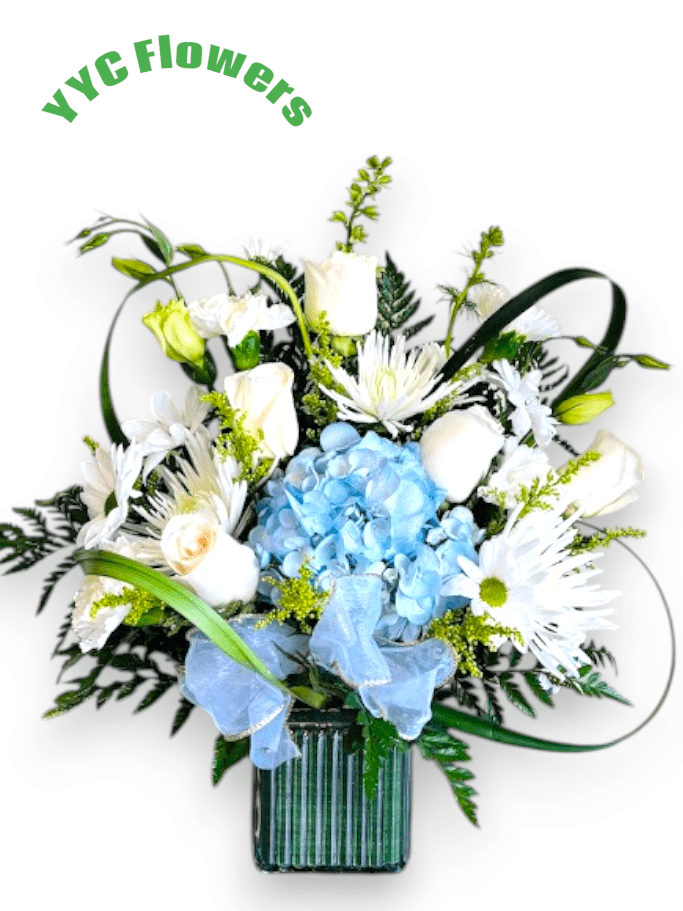 - Rich Flower Blend: Composed of multiple rose, carnation, spider mum, chrysanthemum daisy, blue hydrange, fancy greenery and filler flowers, this floral presentation is absolutely diverse and wonderfully arranged.