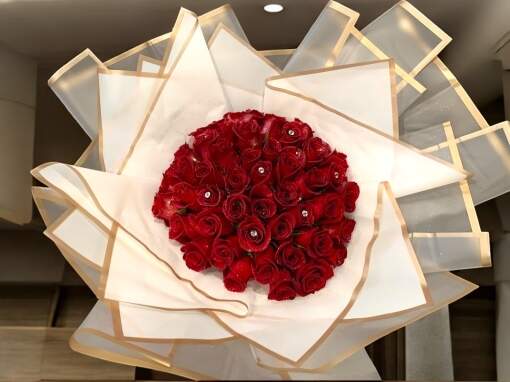 - Luxurious Presentation: Wrapped in premium white and gold paper, this bouquet is designed to impress. The sheer elegance of its packaging enhances the beauty of the roses, creating a visually stunning masterpiece that exudes sophistication.