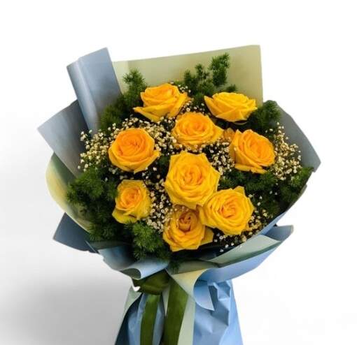 - Flower Variety: This arrangement features approximately 9 stem roses, symbolizing appreciation and admiration. Baby’s breath adds a delicate, cloud-like touch.