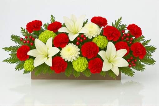 The “Winter Wonderland Centerpiece” bouquet brings joy and freshness ideal to add brightness and style to any event. This arrangement mixes greens and whites to give it a texture that boosts moods, provides peace, and creates a festive atmosphere as well.
