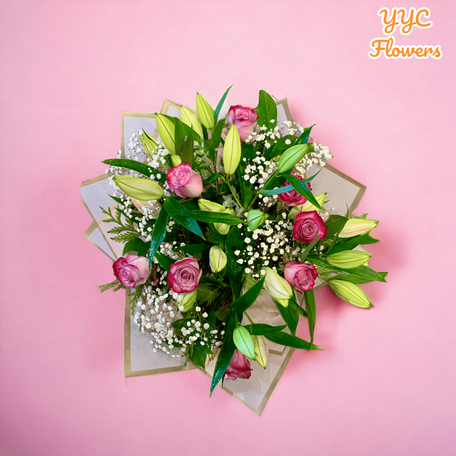 - Symbol of Everlasting Love: 8 luxurious pink roses and 6 stunning lilies, a classic pairing representing passionate love and unwavering devotion.